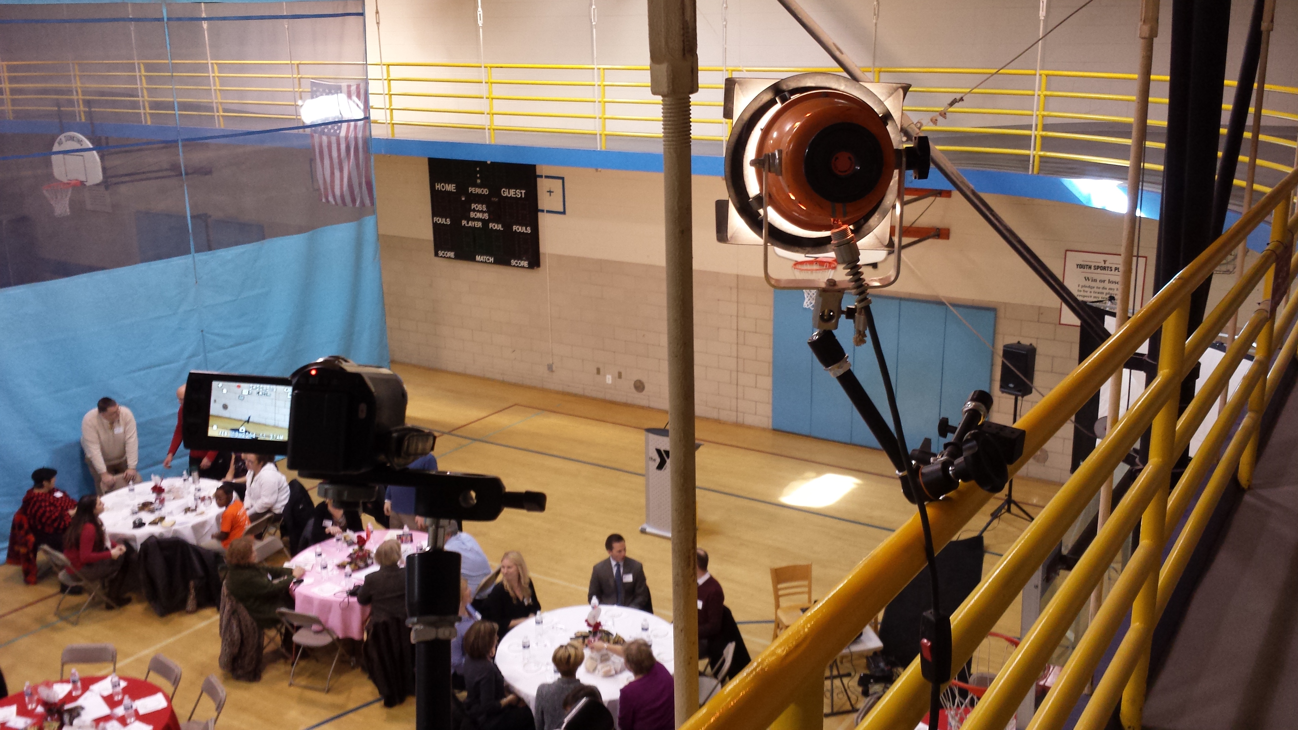 I used a powerful hot light to provide some fill on the speakers during their testimonials, luckily I was able to mount it on the indoor track above the event along with a couple of my camera angles.